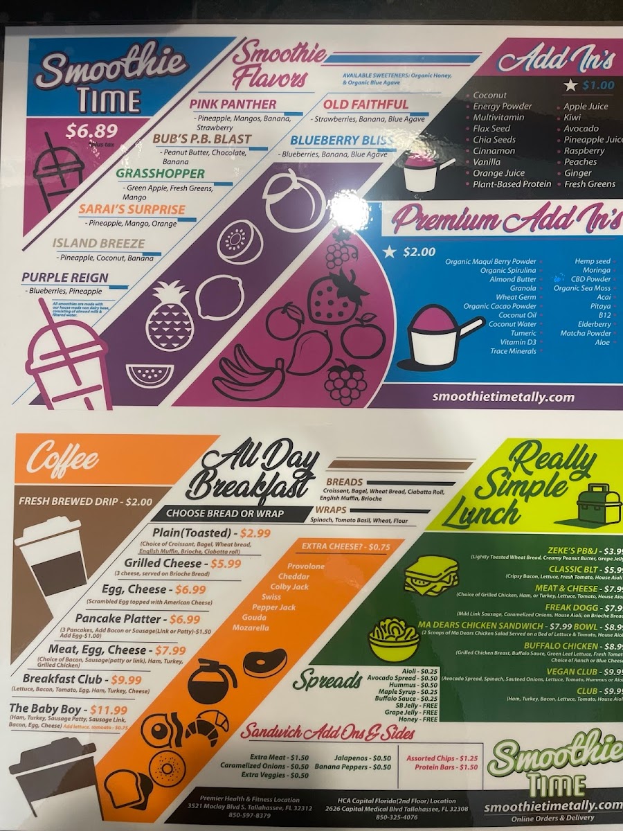 What truly sets Smoothie Time apart, however, is its commitment to using all-natural ingredients, ensuring that each smoothie bursts with flavor while remaining health-conscious. With a daily BOGO happy hour from 3 to 7 PM and a friendly, welcoming staff, it’s easy to see why customers rave about their experiences here. From your morning pick-me-up to a refreshing lunch, Smoothie Time is fast becoming a favorite in Leon County.